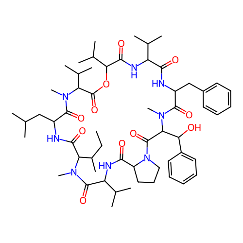 | SMILES | CCC(C)C1C(=O)NC(C(=O)N(C(C(=O)OC(C(=O)NC(C(=O)NC(C(=O)N(C(C(=O)N2CCCC2C(=O)NC(C(=O)N1C)C(C)C)C(C3=CC=CC=C3)O)C)CC4=CC=CC=C4)C(C)C)C(C)C)C(C)C)C)CC(C)C |