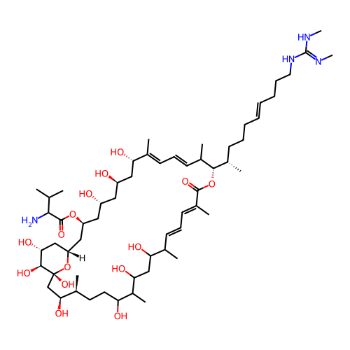 | SMILES | C[C@H]1CCC(C(C(CC(C(C=CC=C(C(=O)O[C@H](C(C=CC=C([C@H](C[C@@H](C[C@H](C[C@@H](C[C@H]2C[C@H]([C@@H]([C@](O2)(C[C@@H]1O)O)O)O)OC(=O)C(C(C)C)N)O)O)O)C)C)[C@@H](C)CCCC=CCCCNC(=NC)NC)C)C)O)O)C)O |