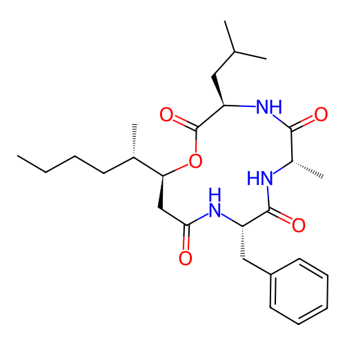 | SMILES | CCCC[C@H](C)[C@@H]1CC(=O)N[C@H](C(=O)N[C@H](C(=O)N[C@@H](C(=O)O1)CC(C)C)C)CC2=CC=CC=C2 |