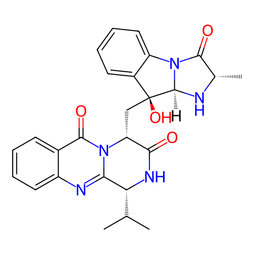 | SMILES | C[C@H]1C(=O)N2[C@@H](N1)[C@@](C3=CC=CC=C32)(C[C@@H]4C(=O)N[C@@H](C5=NC6=CC=CC=C6C(=O)N45)C(C)C)O |