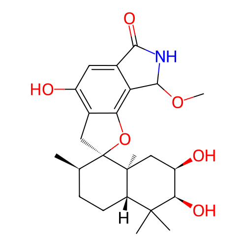 | InChI | InChI=1S/C24H33NO6/c1-11-6-7-16-22(2,3)19(28)15(27)10-23(16,4)24(11)9-13-14(26)8-12-17(18(13)31-24)21(30-5)25-20(12)29/h8,11,15-16,19,21,26-28H,6-7,9-10H2,1-5H3,(H,25,29)/t11-,15-,16+,19-,21?,23+,24-/m1/s1 |