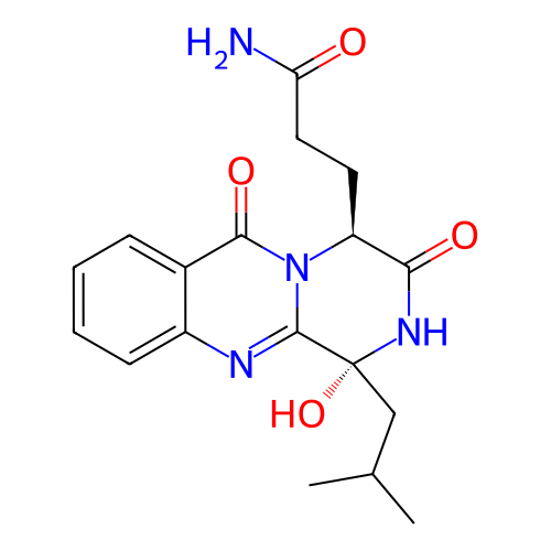| SMILES | CC(C)C[C@]1(C2=NC3=CC=CC=C3C(=O)N2[C@H](C(=O)N1)CCC(=O)N)O |