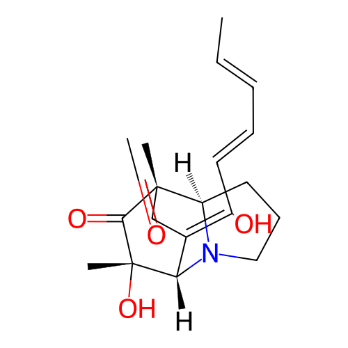| InChI | InChI=1S/C18H23NO4/c1-4-5-6-8-11(20)13-14-18(3,23)16(22)17(2,15(13)21)12-9-7-10-19(12)14/h4-6,8,12,14,20,23H,7,9-10H2,1-3H3/b5-4+,8-6+,13-11?/t12-,14+,17-,18+/m1/s1 |