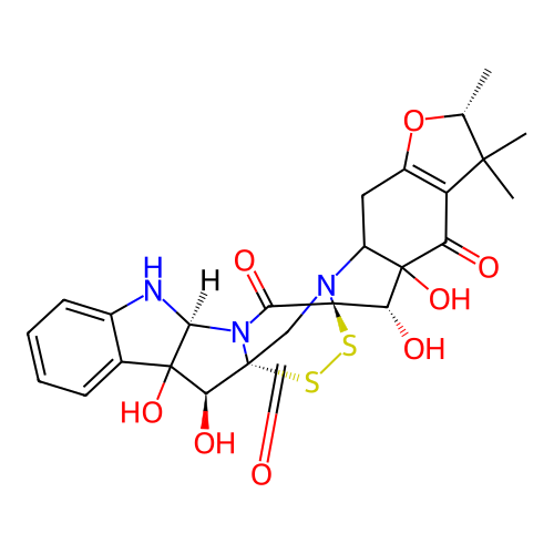 | SMILES | C[C@@H]1C(C2=C(O1)CC3C(C2=O)([C@@H]([C@@]45N3C(=O)[C@]6([C@H](C7([C@H](N6C4=O)NC8=CC=CC=C87)O)O)SS5)O)O)(C)C |