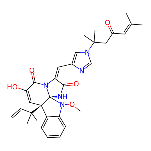 | SMILES | CC(=CC(=O)CC(C)(C)N1C=C(N=C1)/C=C/2\C(=O)N[C@]34N2C(=O)C(=C[C@]3(C5=CC=CC=C5N4OC)C(C)(C)C=C)O)C |