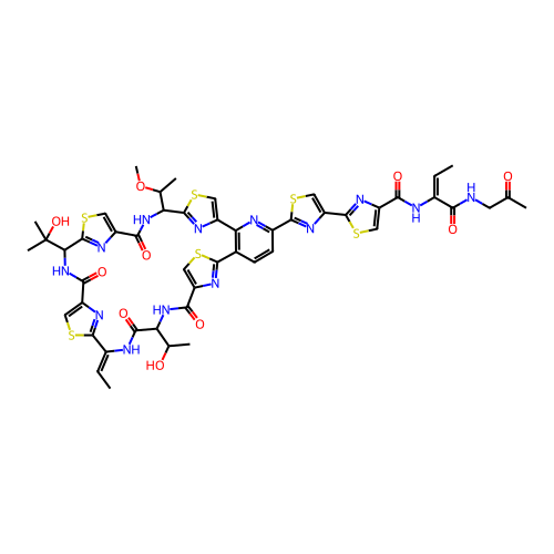 | InChI | InChI=1S/C49H49N13O10S6/c1-9-24(37(65)50-13-20(3)63)52-38(66)28-16-75-46(57-28)32-19-76-45(59-32)26-12-11-23-35(51-26)27-14-77-47(54-27)34(22(5)72-8)61-40(68)30-18-78-48(58-30)36(49(6,7)71)62-41(69)31-17-74-44(56-31)25(10-2)53-42(70)33(21(4)64)60-39(67)29-15-73-43(23)55-29/h9-12,14-19,21-22,33-34,36,64,71H,13H2,1-8H3,(H,50,65)(H,52,66)(H,53,70)(H,60,67)(H,61,68)(H,62,69)/b24-9+,25-10- |