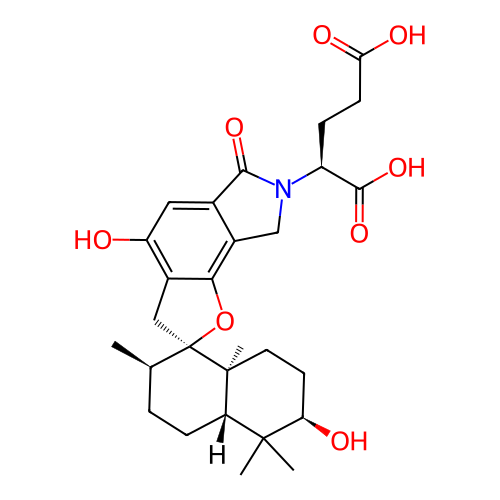 | InChI | InChI=1S/C28H37NO8/c1-14-5-7-20-26(2,3)21(31)9-10-27(20,4)28(14)12-16-19(30)11-15-17(23(16)37-28)13-29(24(15)34)18(25(35)36)6-8-22(32)33/h11,14,18,20-21,30-31H,5-10,12-13H2,1-4H3,(H,32,33)(H,35,36)/t14-,18+,20+,21-,27+,28-/m1/s1 |