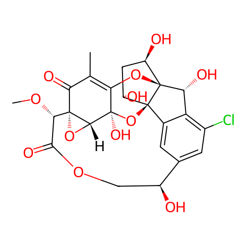| SMILES | CC1=C2[C@@]3([C@H]4[C@@](C1=O)(O4)[C@H](C(=O)OC[C@@H](C5=CC6=C([C@H]([C@@]7([C@@]6(O3)[C@@H](C[C@H]7O)O)O2)O)C(=C5)Cl)O)OC)O |