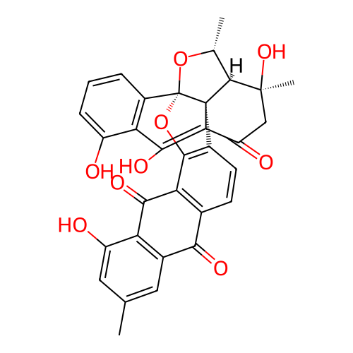 | InChI | InChI=1S/C32H24O9/c1-12-9-15-21(19(34)10-12)26(37)22-14(25(15)36)7-8-17-28(22)41-32-16-5-4-6-18(33)23(16)27(38)24-20(35)11-30(3,39)29(13(2)40-32)31(17,24)32/h4-10,13,29,33-34,38-39H,11H2,1-3H3/t13-,29+,30+,31-,32+/m1/s1 |