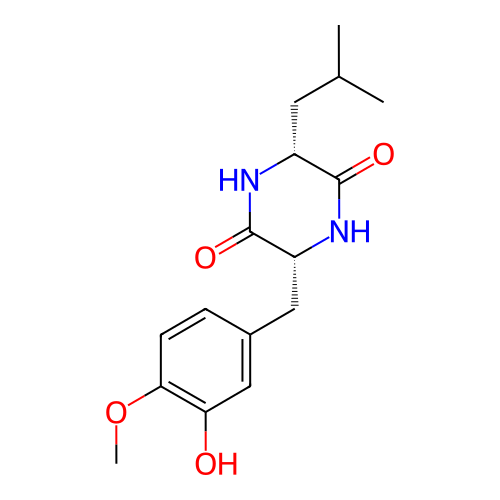 | InChI | InChI=1S/C16H22N2O4/c1-9(2)6-11-15(20)18-12(16(21)17-11)7-10-4-5-14(22-3)13(19)8-10/h4-5,8-9,11-12,19H,6-7H2,1-3H3,(H,17,21)(H,18,20)/t11-,12-/m1/s1 |