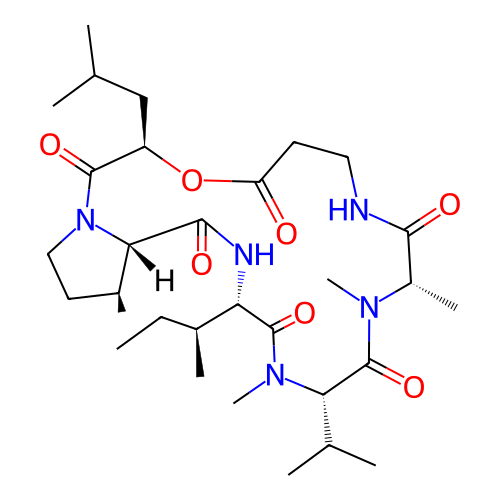 | SMILES | CC[C@H](C)[C@H]1C(=O)N([C@H](C(=O)N([C@H](C(=O)NCCC(=O)O[C@@H](C(=O)N2CC[C@@H]([C@H]2C(=O)N1)C)CC(C)C)C)C)C(C)C)C |