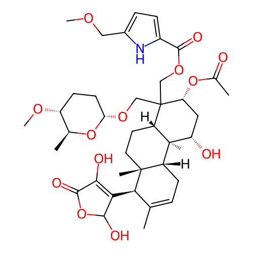 | InChI | InChI=1S/C39H55NO13/c1-20-8-12-26-37(4,32(20)31-33(43)36(46)53-35(31)45)15-14-27-38(26,5)28(42)16-29(52-22(3)41)39(27,18-49-30-13-11-25(48-7)21(2)51-30)19-50-34(44)24-10-9-23(40-24)17-47-6/h8-10,21,25-30,32,35,40,42-43,45H,11-19H2,1-7H3/t21-,25+,26+,27-,28-,29+,30+,32-,35?,37+,38-,39?/m0/s1 |
