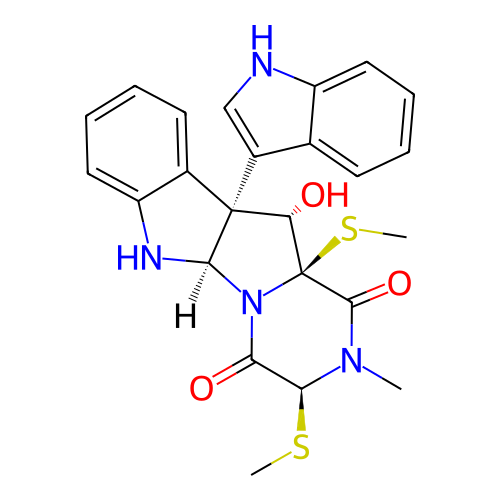 | SMILES | CN1[C@H](C(=O)N2[C@@H]3[C@]([C@@H]([C@@]2(C1=O)SC)O)(C4=CC=CC=C4N3)C5=CNC6=CC=CC=C65)SC |