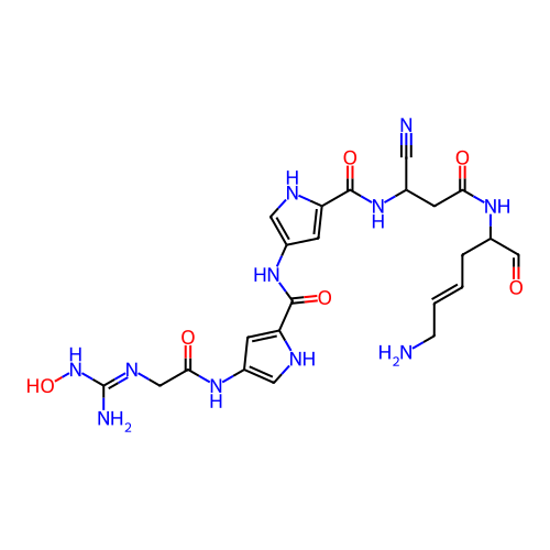 | SMILES | C1=C(NC=C1NC(=O)CN=C(N)NO)C(=O)NC2=CNC(=C2)C(=O)NC(CC(=O)NC(C/C=C/CN)C=O)C#N |