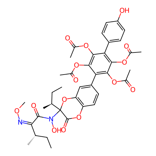 | SMILES | CC[C@H](C)/C(=N/OC)C(=O)N(O)C1([C@@H](C)CC)OC2=C(C=CC(C3=C(OC(C)=O)C(OC(C)=O)=C(C4=CC=C(O)C=C4)C(OC(C)=O)=C3OC(C)=O)=C2)OC1=O |
