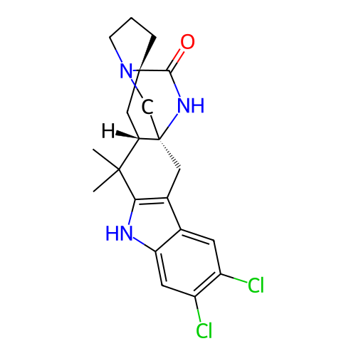 | SMILES | CC1([C@@H]2C[C@]34CCCN3C[C@@]2(CC5=C1NC6=CC(=C(C=C56)Cl)Cl)NC4=O)C |