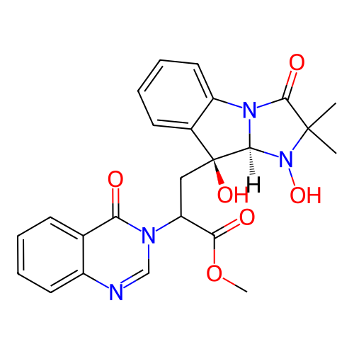 | InChI | InChI=1S/C24H24N4O6/c1-23(2)22(31)27-17-11-7-5-9-15(17)24(32,21(27)28(23)33)12-18(20(30)34-3)26-13-25-16-10-6-4-8-14(16)19(26)29/h4-11,13,18,21,32-33H,12H2,1-3H3/t18?,21-,24-/m0/s1 |
