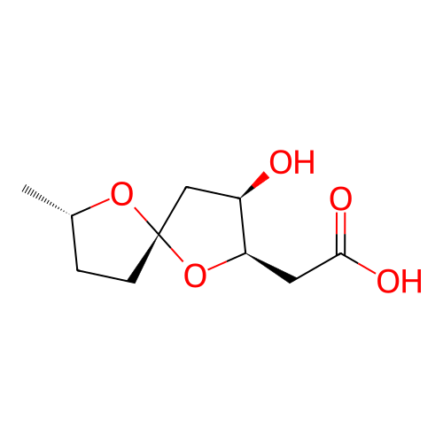 | InChI | InChI=1S/C10H16O5/c1-6-2-3-10(14-6)5-7(11)8(15-10)4-9(12)13/h6-8,11H,2-5H2,1H3,(H,12,13)/t6-,7+,8+,10-/m0/s1 |