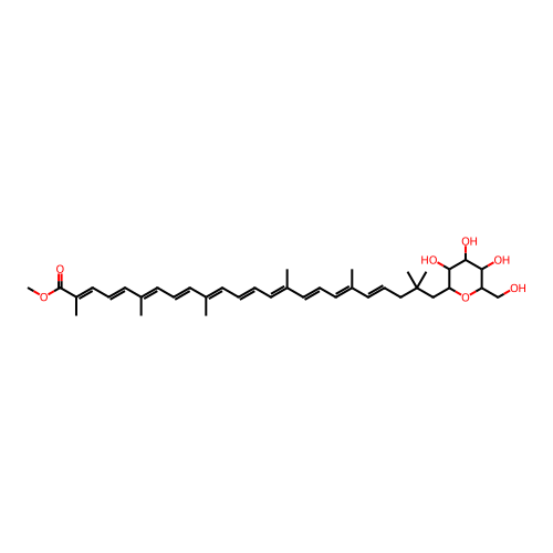 | SMILES | CC(=CC=CC(=CC=CC=C(C)C=CC=C(C)C=CC=C(C)C(=O)OC)C)C=CCC(C)(C)CC1C(C(C(C(O1)CO)O)O)O |