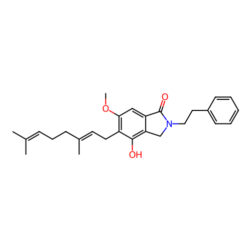 | SMILES | CC(=CCCC(=CCC1=C(C=C2C(=C1O)CN(C2=O)CCC3=CC=CC=C3)OC)C)C |