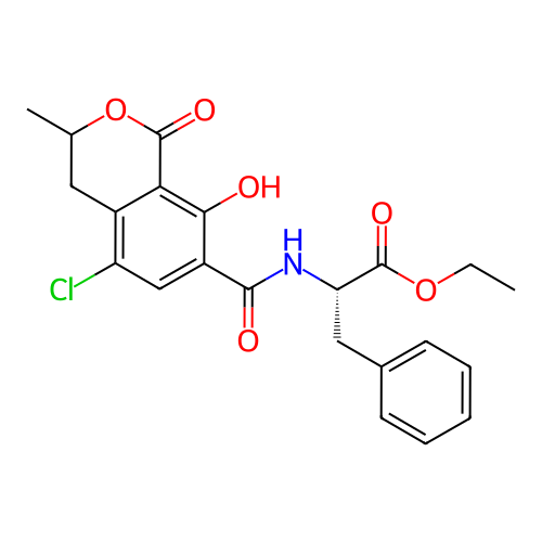 | SMILES | CCOC(=O)[C@H](CC1=CC=CC=C1)NC(=O)C2=CC(=C3CC(OC(=O)C3=C2O)C)Cl |