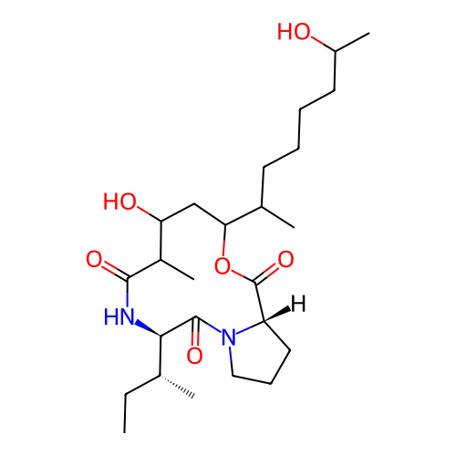 | SMILES | CC[C@@H](C)[C@@H]1C(=O)N2CCC[C@H]2C(=O)OC(CC(C(C(=O)N1)C)O)C(C)CCCCC(C)O |