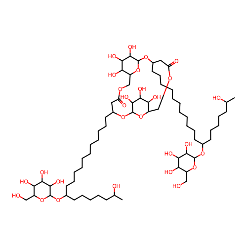 | SMILES | CC(CCCCCC(CCCCCCCCCCCC1CC(=O)OCC2C(C(C(C(O2)OC(CC(=O)OCC3C(C(C(C(O1)O3)O)O)O)CCCCCCCCCCCC(CCCCCC(C)O)OC4C(C(C(C(O4)CO)O)O)O)O)O)O)OC5C(C(C(C(O5)CO)O)O)O)O |