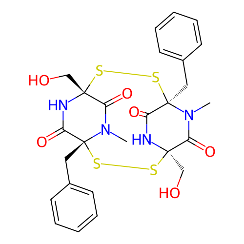 | SMILES | CN1C(=O)[C@@]2(NC(=O)[C@]1(SS[C@@]3(C(=O)N([C@@](C(=O)N3)(SS2)CC4=CC=CC=C4)C)CO)CC5=CC=CC=C5)CO |