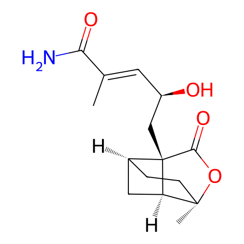 | InChI | InChI=1S/C15H21NO4/c1-8(12(16)18)5-10(17)7-15-9-3-4-14(2,11(15)6-9)20-13(15)19/h5,9-11,17H,3-4,6-7H2,1-2H3,(H2,16,18)/b8-5+/t9-,10+,11+,14+,15-/m0/s1 |