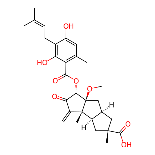 | SMILES | C=C1C(=O)[C@H](OC(=O)C2=C(C)C=C(O)C(CC=C(C)C)=C2O)[C@]2(OC)C[C@H]3C[C@](C)(C(=O)O)C[C@H]3[C@]12C |