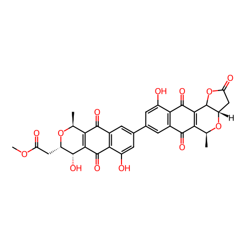 | SMILES | C[C@H]1C2=C(C3[C@@H](O1)CC(=O)O3)C(=O)C4=C(C2=O)C=C(C=C4O)C5=CC6=C(C(=C5)O)C(=O)C7=C(C6=O)[C@@H](O[C@H]([C@H]7O)CC(=O)OC)C |