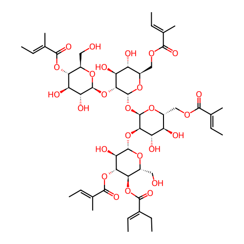 | SMILES | CC/C(=C\C)/C(=O)O[C@@H]1[C@H](O[C@H]([C@@H]([C@H]1OC(=O)/C(=C/C)/C)O)O[C@@H]2[C@H]([C@@H]([C@H](O[C@@H]2O[C@@H]3[C@@H]([C@H]([C@@H]([C@H](O3)COC(=O)/C(=C/C)/C)O)O)O[C@H]4[C@@H]([C@H]([C@@H]([C@H](O4)CO)OC(=O)/C(=C/C)/C)O)O)COC(=O)/C(=C/C)/C)O)O)CO |