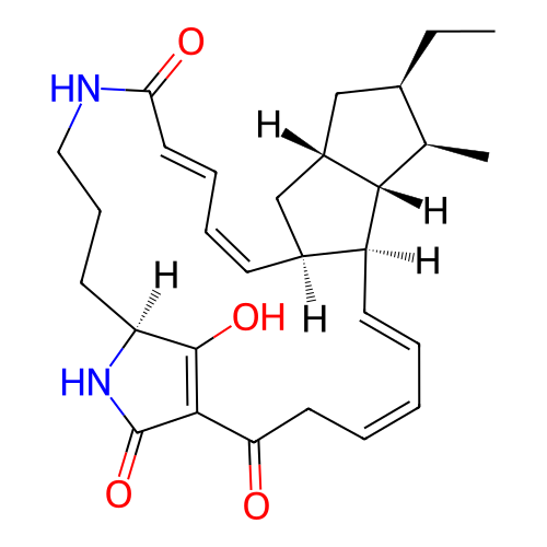 | SMILES | CC[C@@H]1C[C@H]2C[C@@H]3/C=C\C=C\C(=O)NCCC[C@H]4C(=C(C(=O)C/C=C\C=C\[C@@H]3[C@H]2[C@@H]1C)C(=O)N4)O |
