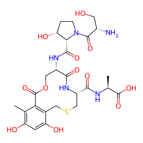 | SMILES | CC1=C(C=C(C2=C1C(=O)OC[C@@H](C(=O)N[C@@H](CSC2)C(=O)N[C@@H](C)C(=O)O)NC(=O)[C@@H]3[C@@H](CCN3C(=O)[C@H](CO)N)O)O)O |