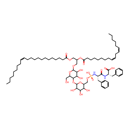 | InChI | InChI=1S/C73H117N2O20P/c1-3-5-7-9-11-13-15-17-19-20-21-22-24-25-27-29-31-33-41-47-62(77)89-52-57(92-63(78)48-42-34-32-30-28-26-23-18-16-14-12-10-8-6-4-2)53-90-72-68(83)66(81)69(60(51-76)93-72)95-73-67(82)65(80)64(79)61(94-73)54-91-96(87,88)75-58(49-55-43-37-35-38-44-55)70(84)74-59(71(85)86)50-56-45-39-36-40-46-56/h12,14,17-19,23,35-40,43-46,57-61,64-69,72-73,76,79-83H,3-11,13,15-16,20-22,24-34,41-42,47-54H2,1-2H3,(H,74,84)(H,85,86)(H2,75,87,88)/b14-12-,19-17-,23-18-/t57?,58-,59-,60?,61?,64?,65?,66?,67?,68?,69?,72?,73?/m0/s1 |