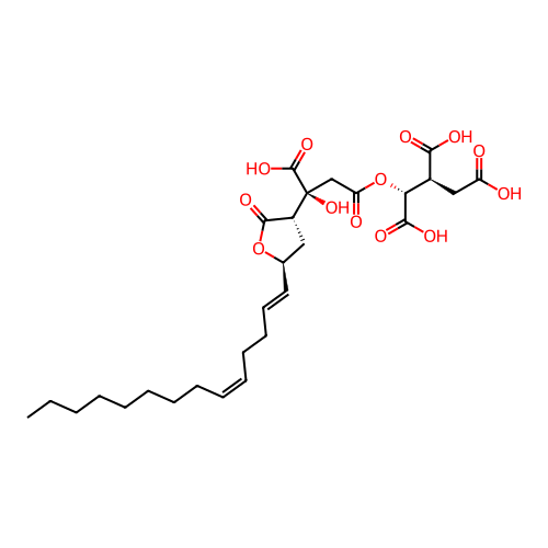 | InChI | InChI=1S/C28H40O13/c1-2-3-4-5-6-7-8-9-10-11-12-13-14-18-15-20(26(36)40-18)28(39,27(37)38)17-22(31)41-23(25(34)35)19(24(32)33)16-21(29)30/h9-10,13-14,18-20,23,39H,2-8,11-12,15-17H2,1H3,(H,29,30)(H,32,33)(H,34,35)(H,37,38)/b10-9-,14-13+/t18-,19+,20-,23-,28+/m1/s1 |