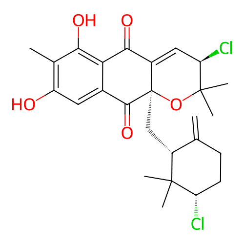 | SMILES | CC1=C(C=C2C(=C1O)C(=O)C3=C[C@H](C(O[C@]3(C2=O)C[C@@H]4C(=C)CC[C@@H](C4(C)C)Cl)(C)C)Cl)O |