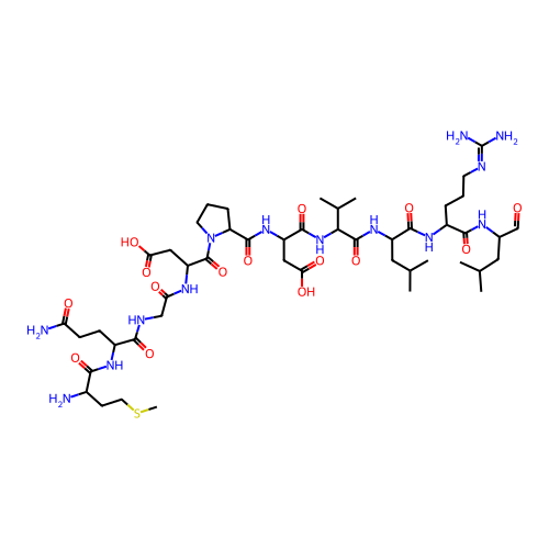 | SMILES | CC(C)CC(C=O)NC(=O)C(CCCN=C(N)N)NC(=O)C(CC(C)C)NC(=O)C(C(C)C)NC(=O)C(CC(=O)O)NC(=O)C1CCCN1C(=O)C(CC(=O)O)NC(=O)CNC(=O)C(CCC(=O)N)NC(=O)C(CCSC)N |