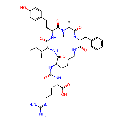 | SMILES | CC[C@H](C)[C@@H]1NC(=O)[C@H](NC(=O)N[C@@H](CCCN=C(N)N)C(=O)O)CCCCNC(=O)[C@H](CC2=CC=CC=C2)NC(=O)[C@H](C)N(C)C(=O)[C@H](CCC2=CC=C(O)C=C2)NC1=O |