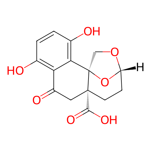 | InChI | InChI=1S/C15H14O7/c16-7-1-2-8(17)12-11(7)9(18)5-14(13(19)20)4-3-10-21-6-15(12,14)22-10/h1-2,10,16-17H,3-6H2,(H,19,20)/t10-,14-,15+/m0/s1 |