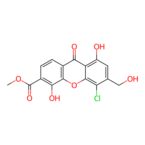 | NAME | 4-chloro-1,5-dihydroxy-3-hydroxymethyl-6-methoxycarbonyl-xanthen-9-one |