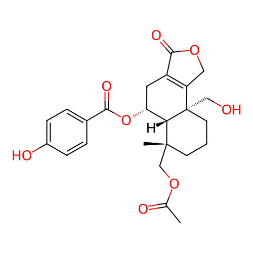 | SMILES | CC(=O)OC[C@@]1(C)CCC[C@]2(CO)C3=C(C[C@@H](OC(=O)C4=CC=C(O)C=C4)[C@@H]12)C(=O)OC3 |