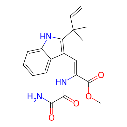 | SMILES | CC(C)(C=C)C1=C(C2=CC=CC=C2N1)/C=C(/C(=O)OC)\NC(=O)C(=O)N |