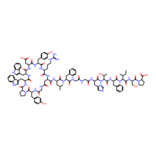 | SMILES | CCC(C)C(C(=O)NC(CO)C(=O)N1CCCC1C(=O)O)NC(=O)C(CC2=CC=CC=C2)NC(=O)C(C(C)O)NC(=O)C(CC3=CNC=N3)NC(=O)CNC(=O)CNC(=O)C(CC4=CC=CC=C4)NC(=O)C(CC(C)C)NC(=O)C5CC(=O)NCC(=O)NC(C(=O)N6CCCC6C(=O)NC(C(=O)NC(C(=O)NC(C(=O)NC(C(=O)NC(C(=O)N5)CCCNC(=N)N)CC7=CC=C(C=C7)O)CC(=O)O)CC8=CNC9=CC=CC=C98)CC1=CNC2=CC=CC=C21)CC1=CC=C(C=C1)O |