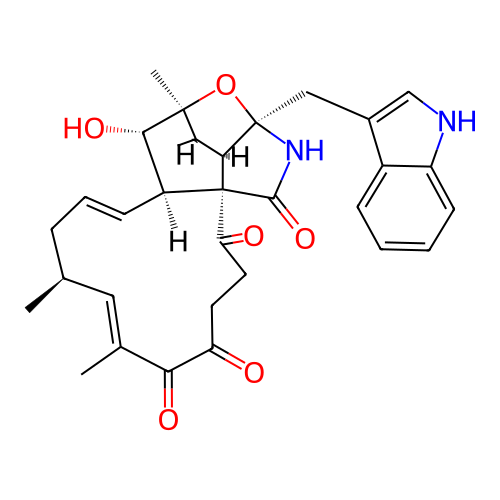 | InChI | InChI=1S/C32H36N2O6/c1-17-8-7-10-22-28(38)30(4)19(3)27-31(40-30,15-20-16-33-23-11-6-5-9-21(20)23)34-29(39)32(22,27)25(36)13-12-24(35)26(37)18(2)14-17/h5-7,9-11,14,16-17,19,22,27-28,33,38H,8,12-13,15H2,1-4H3,(H,34,39)/t17-,19-,22-,27-,28-,30-,31+,32+/m0/s1 |