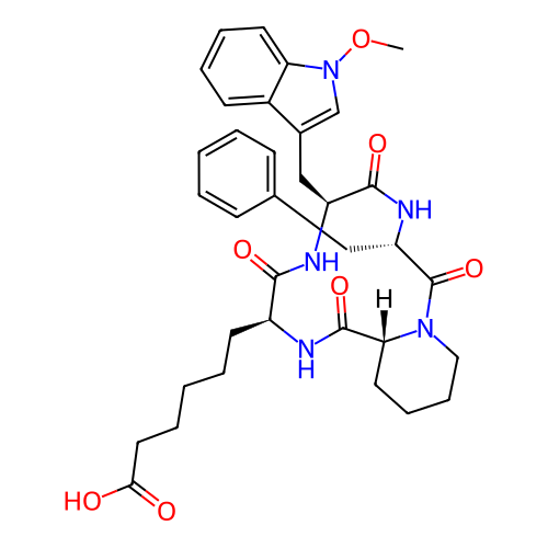 | SMILES | CON1C=C(C2=CC=CC=C21)C[C@H]3C(=O)N[C@H](C(=O)N4CCCC[C@@H]4C(=O)N[C@H](C(=O)N3)CCCCCC(=O)O)CC5=CC=CC=C5 |