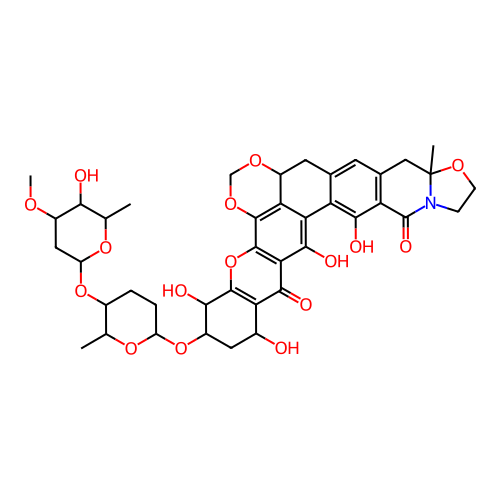 | SMILES | CC1C(CCC(O1)OC2CC(C3=C(C2O)OC4=C(C3=O)C(=C5C6=C4OCOC6CC7=CC8=C(C(=C75)O)C(=O)N9CCOC9(C8)C)O)O)OC1CC(C(C(O1)C)O)OC |