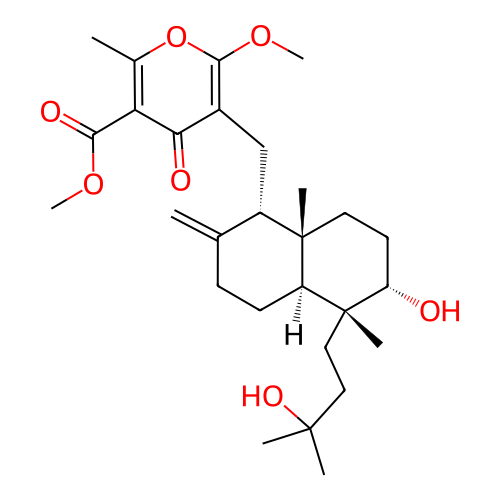 | SMILES | CC1=C(C(=O)C(=C(O1)OC)C[C@H]2C(=C)CC[C@H]3[C@]2(CC[C@@H]([C@]3(C)CCC(C)(C)O)O)C)C(=O)OC |