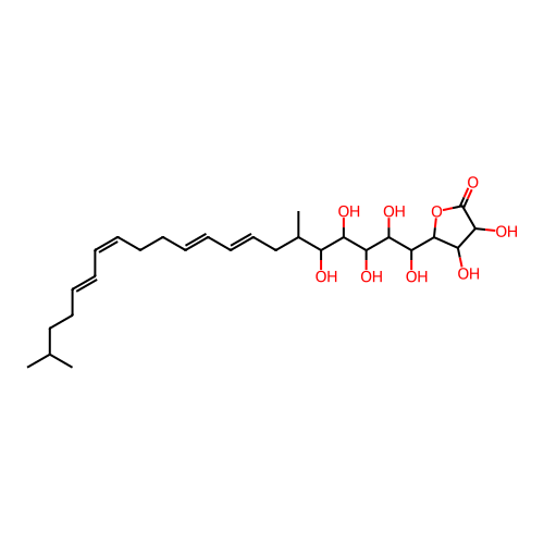 | SMILES | CC(C)CC/C=C/C=C\CC/C=C/C=C/CC(C)C(C(C(C(C(C1C(C(C(=O)O1)O)O)O)O)O)O)O |