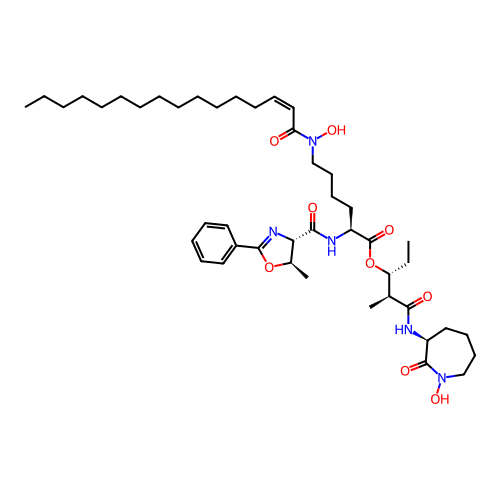 | SMILES | CCCCCCCCCCCCC/C=C\C(=O)N(CCCC[C@@H](C(=O)O[C@H](CC)[C@H](C)C(=O)N[C@H]1CCCCN(C1=O)O)NC(=O)[C@@H]2[C@H](OC(=N2)C3=CC=CC=C3)C)O |